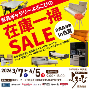 家具ギャラリーよろこび福山商店「歳末セール」 歳末セール 令和7年11月29日(土)~12月28日(日) 家具ギャラリーよろこび 福山商店にて開催します。 2025/11/28 セールイベント情報店長ブログ