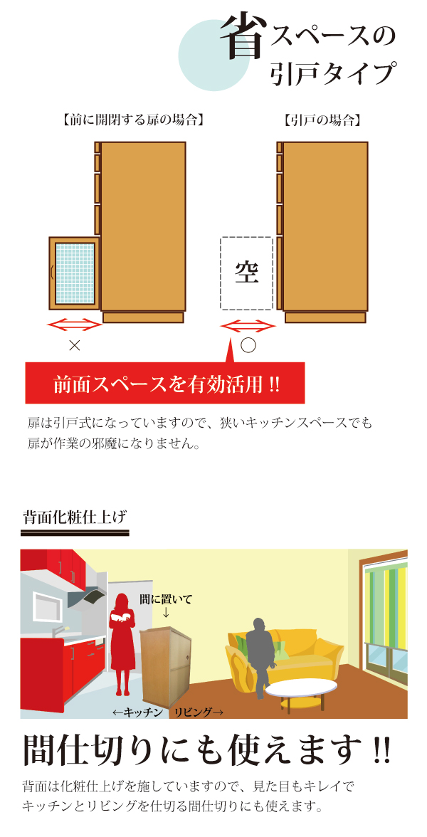 ハイカウンターボード ファミリー 100 ナチュラル ブラウン ホワイト 引き戸タイプの特徴など